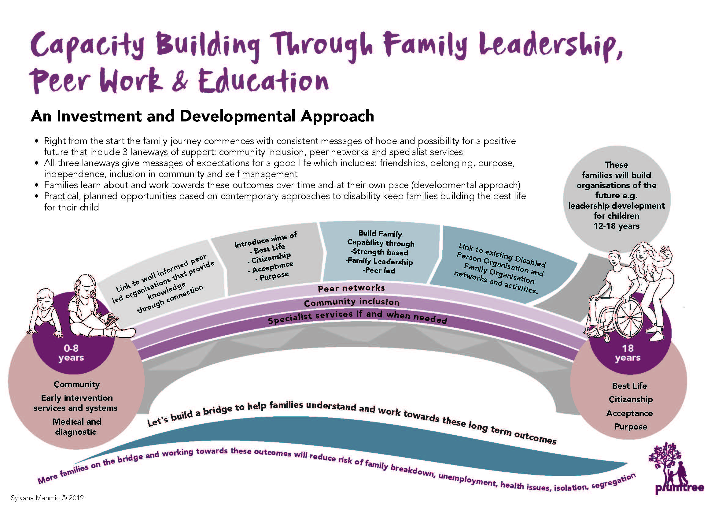 We need to build a bridge that helps them cross the river. This hypothetical bridge will require investment for capacity-building initiatives involving family leadership, peer work and education to be planned, implemented and sustained. Learnings for many families will need a developmental approach, for them to learn at their own pace over time, to layer and build skills.