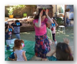 Picture: Isabella’s teacher and the children at preschool signing (and being) Easter bunnies