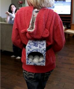 Boxes from around the house can be upcycled, too. With an empty tissue box, make two slits on the bottom of the box and thread a belt or ribbon through them. Strap the box to the players back and place 6-8 ping pong balls inside. Jump, shake, dance and shimmy around until all the balls fall out. This is best played with 2 or more people—the first person with an empty box wins!