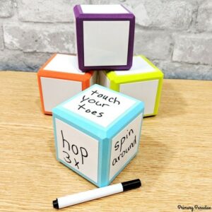 Make choosing a brain-break activity an activity! Create a durable brain-break activity dice from old ring boxes. Other strong square boxes are good, too. Print images or write an activity for each side, and take turns in rolling and completing the activity displayed.