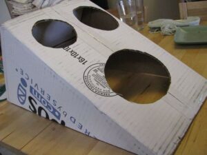 Play a game that practices precision and accuracy. Make diagonal cuts in the same direction along opposite sides of a large box. Open it up, flip it over and cut three different sized holes at the bottom of the box. Then, cut away the extra flaps. It helps to plan ahead and draw the cut lines first to make sure they’re in the right place. You can use beanbags or tennis balls to toss into the box. For an added challenge, assign points to each hole and vary how close you stand to the box when throwing.